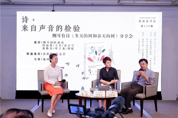 10月12日下午,側(cè)耳團(tuán)隊(duì)的七位主播印海蓉、王幸、雷小雪、徐惟杰、葉子龍、邢航、施琰攜新編詩集《冬天的樹和春天的樹》來到第320期思南讀書會(huì)現(xiàn)場(chǎng),和復(fù)旦大學(xué)教授張新穎及青年評(píng)論家、詩人張定浩一起探討詩歌藝術(shù)的有聲表達(dá),...... [更多]
