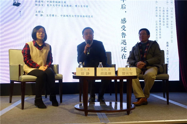 從左至右為項靜、閻晶明、郜元寶 12月31日,學者作家閻晶明帶著他的新著《魯迅還在》走進思南讀書會第221期的現(xiàn)場,對談評論家郜元寶,帶領讀者們以魯迅的日常生活為切入點,共同感受魯迅的偉大和不平凡。青年評論家項靜擔任本次......