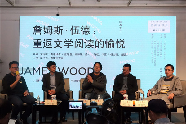 從左至右李偉長(zhǎng)、張定浩、楊全強(qiáng)、趙松、黃遠(yuǎn)帆 4月6日下午,詩(shī)人、評(píng)論家張定浩、出版人楊全強(qiáng)、小說家趙松和青年譯者黃遠(yuǎn)帆來到思南讀書會(huì)第292期“述而之四——詹姆斯·伍德:重返文學(xué)閱讀的愉悅”。四位嘉賓圍繞詹姆斯·伍德......