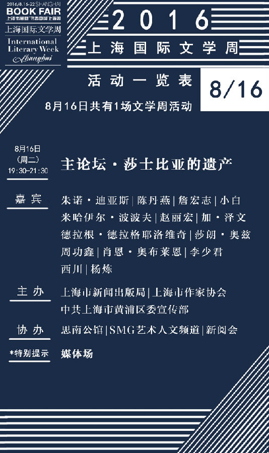 “我有8分鐘的時間,來講講我分到的莎士比亞的遺產(chǎn)。” 臺灣作家、電影人詹宏志站在燈光炙烤的舞臺中央,分享自己和莎士比亞有關的故事,然而,超時是意料之中的事。 幾乎每位發(fā)言的作家都超時了。8月16日晚間,在2016年上海國際......